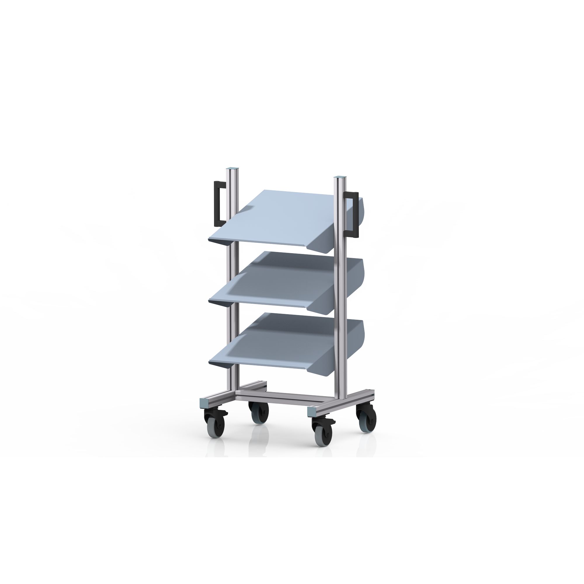 Der Montagewagen / Sichtlagerwagen ist die ideale Lösung zur übersichtlichen Lagerung von Waren und Materialien. Mit seinen schrägen Fachböden, die eine Neigung aufweisen, eignet sich der Wagen perfekt für die Anwendung des FIFO-Systems. Dies bedeutet, dass die Regalinhalte, die zuerst eingelagert wurden, auch zuerst wieder entnommen werden (FIFO-Prinzip „First-In – First-Out“). So gewährleistet es eine optimale Lagerorganisation.